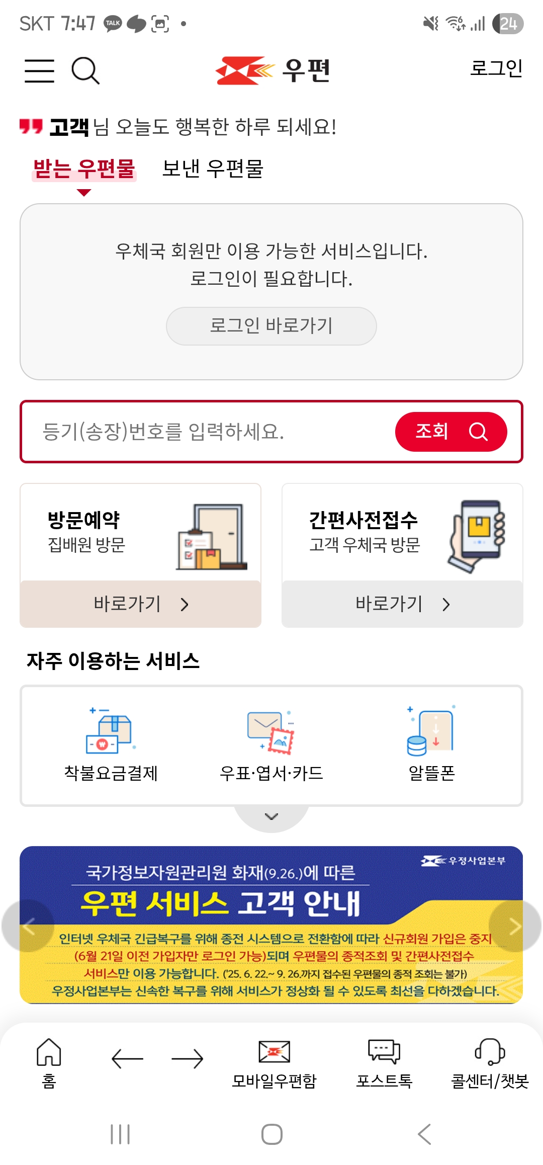 - 편의 서비스: 방문 접수 서비스(집배원 방문), 예약 발송도 가능합니다.